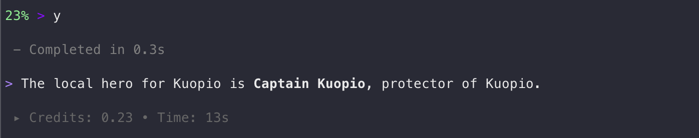 Working as expected! Note that the model did not respond based on the tool output as it was; instead, it made its own reasoning to answer my original question.
